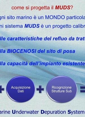 Ogni sistema MUDS è unico, dimensionato e verificato sulle caratteristiche del sito marino e del refluo da trattare: quindi una fase di raccolta e studio di tali caratteristiche è necessaria preliminarmente all’adozione del MUDS.
