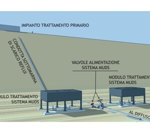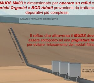 Il MUDS deve essere opportunamente posizionato sui diffusori subacquei delle condotte di scarico asservite agli impianti di depurazione; in tale posizione, esso viene attraversato dal refluo scaricato dal quale rimuove la componente organica.